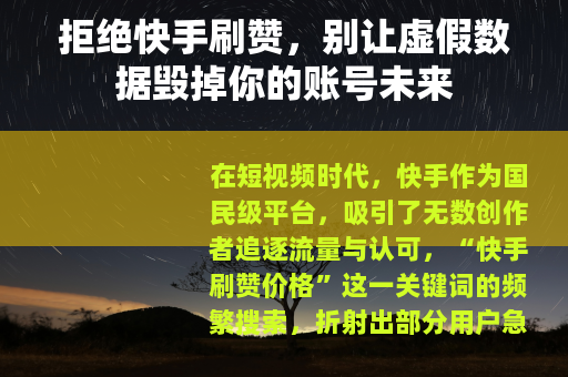 在短视频时代,快手作为国民级平台,吸引了无数创作者追逐流量与认可。“快手刷赞价格”这一关键词的频繁搜索,折射出部分用户急于求成的心态——试图通过购买虚假点赞快速提升账号热度,但事实上,刷赞不仅违背平台规则,更藏着诸多看不见的风险,让我们揭开这层虚假繁荣的面纱。