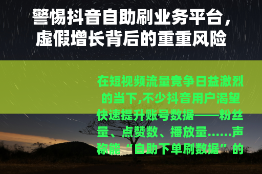 抖音的核心价值在于真实的内容与互动,虚假数据无法支撑账号的长期发展,面对“自助刷业务平台”的诱惑,我们应保持理性——与其追求一时的数字泡沫,不如沉下心打磨内容,用实力赢得真正的流量与认可,遵守平台规则,走合规之路,才是抖音账号成长的长久之计。