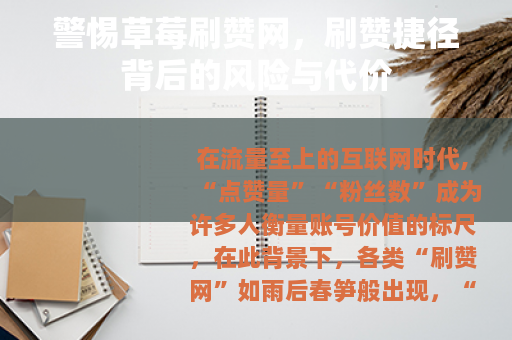 在流量至上的互联网时代,“点赞量”“粉丝数”成为许多人衡量账号价值的标尺,在此背景下,各类“刷赞网”如雨后春笋般出现,“草莓刷赞网”便是其中之一,这类平台声称能快速提升社交账号的点赞、粉丝、播放量等数据,吸引了不少急于求成的用户,看似便捷的“数据提升”背后,隐藏着对账号安全、平台生态乃至法律底线的多重威胁。