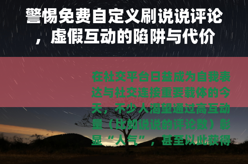 “免费自定义刷说说评论”看似是“零成本”的捷径,实则是以账号安全、法律风险和社交价值为代价的“赔本买卖”,社交的本质是真实与真诚——当我们放下对虚假数据的执念,用心经营每一次真实的互动,才能在社交平台上收获真正的连接与成长。
