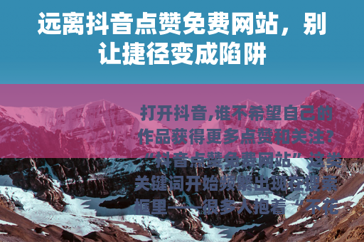 打开抖音,谁不希望自己的作品获得更多点赞和关注?“抖音点赞免费网站”这类关键词开始频繁出现在搜索框里——很多人抱着“不花钱就能涨赞”的侥幸心理,试图通过这类网站走“捷径”,但真相是:这些所谓的“免费点赞网站”,大多是藏着风险的陷阱,不仅帮不了你,还可能让你的账号和个人权益遭受损失。
