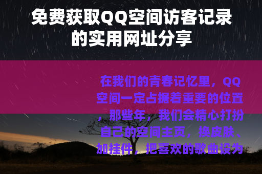 QQ空间作为陪伴我们多年的社交平台,不仅仅是一个分享生活的地方,更是连接情感的纽带,每一个访客记录的背后,都藏着一份关注和在意,通过这些免费的网址,我们能更清晰地感受到这份关注,也能更主动地去回应这份在意,或许,一个小小的访客记录,就能让你重新联系上久违的朋友,或者让你发现身边默默支持你的人。