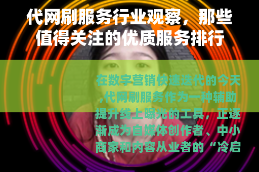 在数字营销快速迭代的今天,代网刷服务作为一种辅助提升线上曝光的工具,正逐渐成为自媒体创作者、中小商家和内容从业者的“冷启动帮手”,对于刚起步的账号或新品来说,缺乏初始流量和互动往往是最大的瓶颈——你的内容再好,商品再优,如果没有基础的曝光量,就很难被平台推荐,更难被目标用户发现,选择合适的代网刷服务,能帮你打破这个“沉默期”,让更多真实用户看到你的价值,行业内哪些服务值得关注?优质服务的排行依据又是什么?今天我们就来聊聊这个话题。