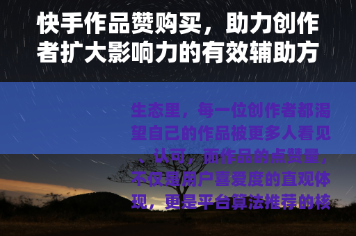 生态里,每一位创作者都渴望自己的作品被更多人看见、认可,而作品的点赞量,不仅是用户喜爱度的直观体现,更是平台算法推荐的核心参考指标之一,对于刚起步的新手创作者或粉丝基数较小的账号来说,如何快速打破初始流量壁垒,让优质内容获得更多曝光机会,成为了不少人思考的问题,快手作品赞购买作为一种辅助手段,逐渐成为创作者们提升内容影响力的选择之一。