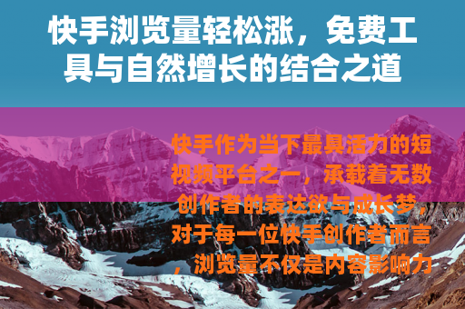 快手作为当下最具活力的短视频平台之一,承载着无数创作者的表达欲与成长梦,对于每一位快手创作者而言,浏览量不仅是内容影响力的直观体现,更是打开流量大门、吸引粉丝关注的关键钥匙,不少朋友都在寻找提升浏览量的便捷方法,0元快手刷浏览量网址”偶尔会出现在讨论中,但今天我们想和大家分享的,是如何通过合规、可持续的方式,让你的快手内容获得真实且稳定的增长——毕竟,长久的发展永远建立在真实互动与优质内容的基础上。
