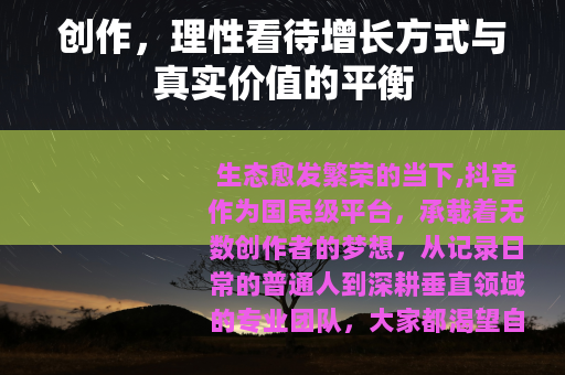 在这个信息爆炸的时代,抖音给了每个人展示自己的机会,与其纠结于短期的数据增长,不如沉下心来,做有温度、有价值的内容,相信只要坚持初心,不断提升自己的创作能力,终会被更多人看见,实现真正的成长与突破,这,才是抖音创作最本真的意义。