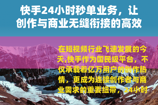 在短视频行业飞速发展的今天,快手作为国民级平台,不仅承载着亿万用户的创作热情,更成为连接创作者与商业需求的重要纽带,24小时秒单业务的兴起,正以其高效、便捷的特性,为平台生态注入新的活力,让创作变现与商业推广的对接变得更加即时、顺畅。