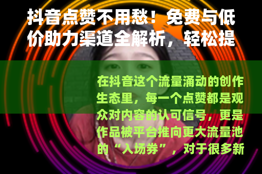 在抖音这个流量涌动的创作生态里,每一个点赞都是观众对内容的认可信号,更是作品被平台推向更大流量池的“入场券”,对于很多新手创作者而言,如何高效获取点赞、突破冷启动阶段,是绕不开的话题——而“免费”与“低价”,则是大家最关注的关键词,我们就来聊聊那些既靠谱又实惠的点赞助力方式,帮你用最小的成本撬动最大的曝光。
