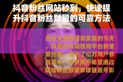 在社交媒体蓬勃发展的今天,抖音作为短视频平台的重要代表,吸引了亿万用户参与其中,许多用户希望通过增加粉丝数量来增强账号影响力,而抖音粉丝网站秒到服务便成为了一种备受关注的工具,这项服务允许用户通过专业网站购买粉丝,并实现粉丝的快速到账,为账号成长提供了便捷支持。