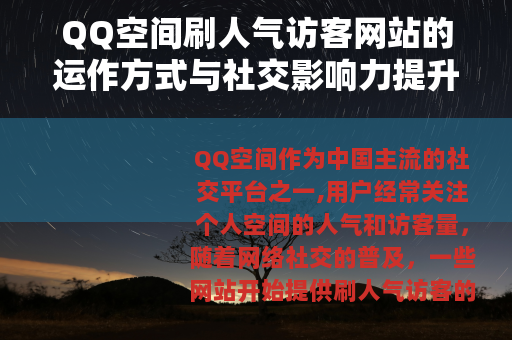 QQ空间作为中国主流的社交平台之一,用户经常关注个人空间的人气和访客量,随着网络社交的普及,一些网站开始提供刷人气访客的服务,旨在帮助用户快速提升访问数据,这些网站通过技术模拟或人工操作,为QQ空间增加访客记录,从而在短期内改善人气表现。