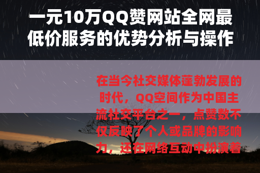 一元10万QQ赞网站全网最低价服务的优势分析与操作指南
