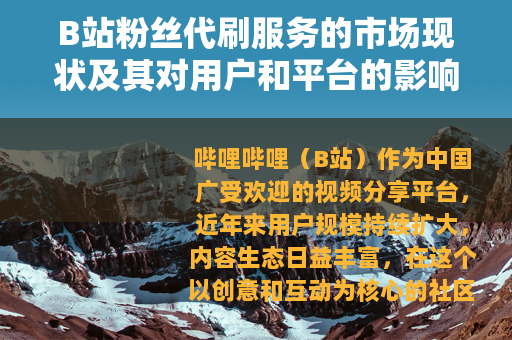 哔哩哔哩(B站)作为中国广受欢迎的视频分享平台,近年来用户规模持续扩大,内容生态日益丰富,在这个以创意和互动为核心的社区中,粉丝数量常常被视为衡量创作者影响力的关键指标之一,由此,一些用户为了快速提升账号的关注度,开始借助粉丝代刷服务,这类服务通过第三方渠道,以非自然增长的方式增加B站账号的订阅者,形成了特定的市场现象,本文将从客观角度,讨论B站粉丝代刷的常见方式、用户动机、以及相关的平台和行业动态。