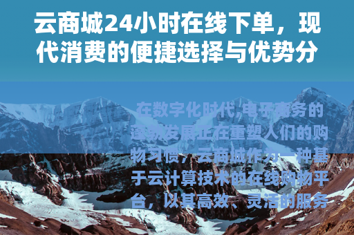 在数字化时代,电子商务的蓬勃发展正在重塑人们的购物习惯,云商城作为一种基于云计算技术的在线购物平台,以其高效、灵活的服务模式,逐渐成为消费者和企业的重要选择,24小时在线下单功能更是云商城的核心亮点,它为用户提供了全天候的购物便利,打破了传统零售的时间与空间限制,本文将深入探讨云商城24小时在线下单的服务特点、技术实现、用户受益以及未来前景,帮助读者全面了解这一现代消费方式。