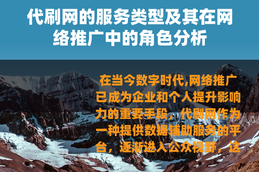 在当今数字时代,网络推广已成为企业和个人提升影响力的重要手段,代刷网作为一种提供数据辅助服务的平台,逐渐进入公众视野,这类网站通常提供刷流量、刷粉丝、刷点赞、刷评论等服务,旨在帮助用户快速提升网络指标,从而增强可见度,本文将从代刷网的服务功能、应用场景以及相关考量方面进行阐述,以客观视角分析其角色。