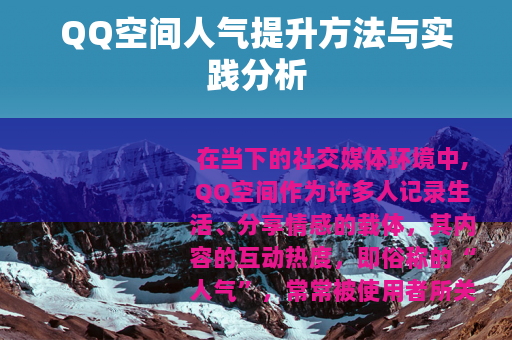 在当下的社交媒体环境中,QQ空间作为许多人记录生活、分享情感的载体,其内容的互动热度,即俗称的“人气”,常常被使用者所关注,这种对“人气”的追求,本质上源于人们希望获得关注、认同与情感连接的心理需求,围绕如何提升QQ空间访问量与互动量的话题,始终保持着一定的讨论度。