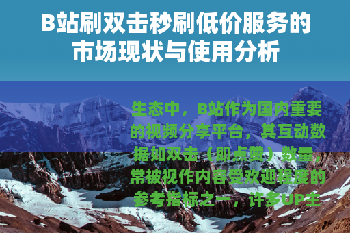 生态中,B站作为国内重要的视频分享平台,其互动数据如双击(即点赞)数量,常被视作内容受欢迎程度的参考指标之一,许多UP主或内容创作者希望借助提高双击量,来增加视频的曝光机会、吸引更多自然流量,从而提升个人或品牌的影响力,在这一需求背景下,市场上逐渐出现了各类提供“刷双击秒刷低价”服务的第三方渠道,形成了一定的供需关系。