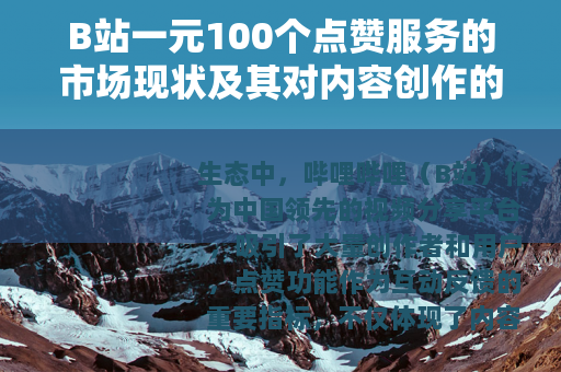 生态中,哔哩哔哩(B站)作为中国领先的视频分享平台,吸引了大量创作者和用户,点赞功能作为互动反馈的重要指标,不仅体现了内容的受欢迎程度,还可能影响视频的推荐流量和创作者的动力,近年来,市场上出现了一种低价点赞服务,即以一元钱购买100个点赞的现象,这引起了广泛关注,本文将从多个角度解析这一服务,探讨其运作模式、市场驱动力以及对平台内容生态的潜在影响。
