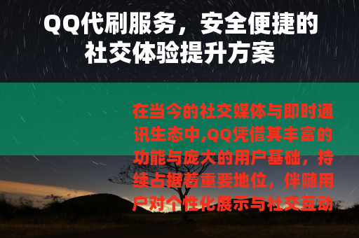 在当今的社交媒体与即时通讯生态中,QQ凭借其丰富的功能与庞大的用户基础,持续占据着重要地位,伴随用户对个性化展示与社交互动效率的需求增长,一种辅助性服务——QQ代刷,也逐渐进入部分用户的视野,此类服务主要旨在通过技术或人工操作,帮助用户提升其QQ账号相关指标的可见度与活跃度。