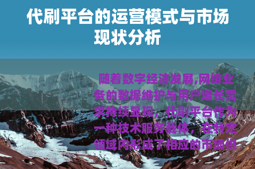 随着数字经济发展,网络业务的数据维护与用户增长需求持续显现,代刷平台作为一种技术服务载体,在特定领域内形成了相应的市场供需关系,这类平台主要通过技术手段,为用户提供数据维护、关注度提升或任务执行等服务,其存在与当前互联网生态中的某些运营逻辑密切相关。