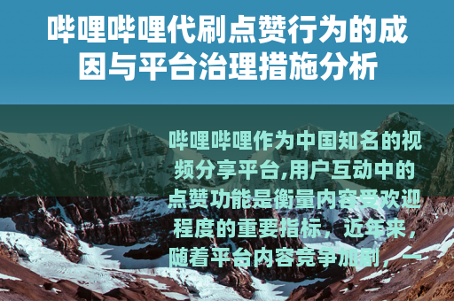 总体而言,代刷点赞行为反映了数字平台中数据竞争的侧面,但其对社区诚信的潜在影响值得关注,哔哩哔哩通过技术与规则的双重手段,正逐步规范此类现象,以维护平台的公信力和用户体验,随着平台治理的完善,用户更应依靠真实努力来赢得认可,共同促进视频分享社区的繁荣发展。