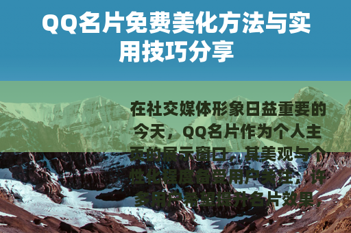 在社交媒体形象日益重要的今天,QQ名片作为个人主页的展示窗口,其美观与个性化程度备受用户关注,许多用户希望提升名片效果,寻找便捷且无需成本的方法,本文将系统介绍一系列完全免费的途径和实用技巧,帮助您自主优化QQ名片,展现独特风格。