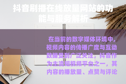 在当前的数字媒体环境中,视频内容的传播广度与互动数据受到广泛关注,抖音作为主流短视频平台之一,其内容的播放量、点赞与评论等互动指标,常被视为衡量内容热度与影响力的参考依据,在此背景下,一些提供抖音刷播在线放量服务的网站应运而生,为用户提供了一种提升内容可见度的辅助方式。