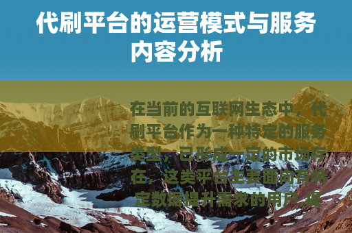 在当前的互联网生态中,代刷平台作为一种特定的服务类型,已形成一定的市场存在,这类平台主要面向有特定数据提升需求的用户,提供各类有偿的辅助服务。