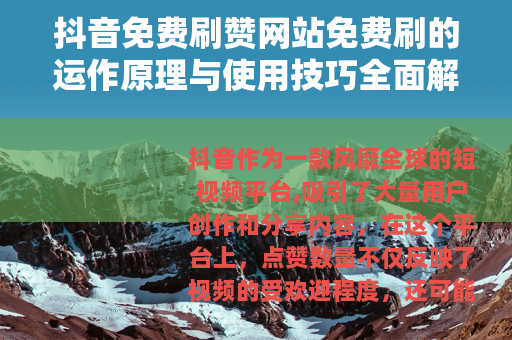 抖音作为一款风靡全球的短视频平台,吸引了大量用户创作和分享内容,在这个平台上,点赞数量不仅反映了视频的受欢迎程度,还可能影响其在推荐算法中的曝光率,许多用户关注如何提升点赞数,而免费刷赞网站便成为了一种常见选择,这类网站通常承诺无需付费即可增加点赞,通过自动化工具或用户互助机制实现,下面将详细介绍其运作方式、使用建议以及相关注意事项。