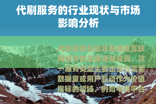 代刷现象在近年来随着互联网经济的发展逐渐显现,这一服务类型主要出现在需要数据量或用户互动作为价值指标的领域,例如电商平台的销量与评价、社交媒体账号的关注度、网络内容的点击量等,从市场运作角度看,代刷行为的产生与部分商业环节的评价机制密切相关,一些经营者为在较短时间内提升可见度,会选择通过特定渠道获得数据支持。
