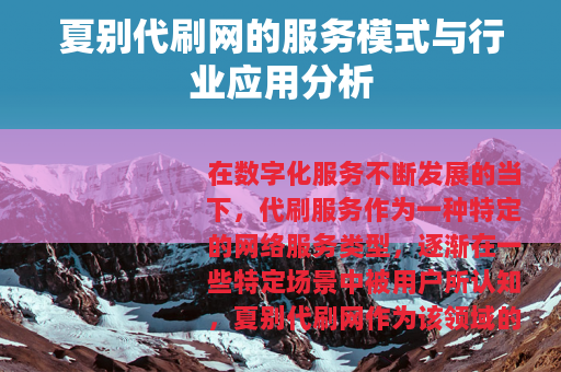 总体而言,夏别代刷网代表了代刷服务领域的一种常见形态,通过了解其服务模式、技术基础及市场定位,用户可以更全面地认识该类服务的功能与局限,在数字化运营中,各类工具与服务都有其适用场景,关键在于根据实际需求做出合适选择,并保持对行业动态的关注,随着网络环境的演进,代刷服务也可能逐步适应新的市场要求,发展出更成熟的服务形态。