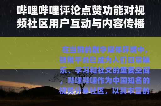 在当前的数字媒体环境中,视频平台已成为人们日常娱乐、学习和社交的重要空间,哔哩哔哩作为中国知名的视频分享社区,以其丰富的弹幕文化和活跃的用户参与度著称,评论点赞功能作为用户互动的关键环节,不仅体现了社区成员对内容的认可,还在平台生态中发挥了多重作用,本文将详细探讨这一功能如何促进用户互动与内容传播,并分析其背后的社会和技术因素。