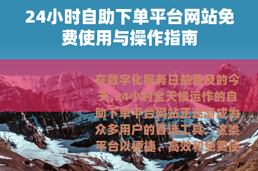 在数字化服务日益普及的今天,24小时全天候运作的自助下单平台网站正逐渐成为众多用户的首选工具,这类平台以便捷、高效和免费使用为核心特点,为用户提供了一个不受时间限制、自主完成商品或服务订购的线上空间,本文将系统介绍此类平台的基本功能、主要优势、使用方法以及相关注意事项,帮助读者更好地理解并运用这一工具。