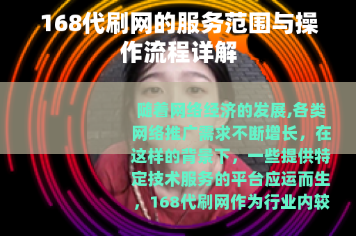 随着网络经济的发展,各类网络推广需求不断增长,在这样的背景下,一些提供特定技术服务的平台应运而生,168代刷网作为行业内较为知名的服务平台之一,为许多用户提供了多样化的辅助支持。