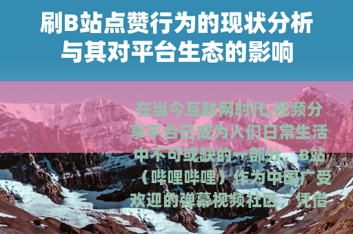 在当今互联网时代,视频分享平台已成为人们日常生活中不可或缺的一部分,B站(哔哩哔哩)作为中国广受欢迎的弹幕视频社区,凭借其丰富的内容和活跃的用户互动,吸引了大量创作者和观众,点赞功能作为B站的核心互动方式之一,不仅帮助用户表达对视频的喜爱,还直接关系到视频的曝光度和推荐权重,随着平台规模的扩大,刷B站点赞的现象逐渐浮现,即通过非自然手段人为提升视频的点赞数量,这一行为虽非普遍,但已对平台生态产生了一定的影响,值得深入分析。
