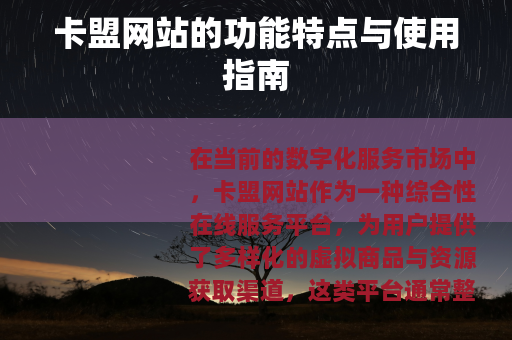 总体而言,卡盟网站作为数字商品流通的一种模式,在提升交易效率、降低采购成本方面具有积极意义,用户通过合理选择平台并遵循规范操作流程,可以便捷地获取所需虚拟产品与服务,随着行业服务的不断优化,这类平台有望在资源整合与用户体验上继续完善,为更广泛的网络消费群体提供实用支持。