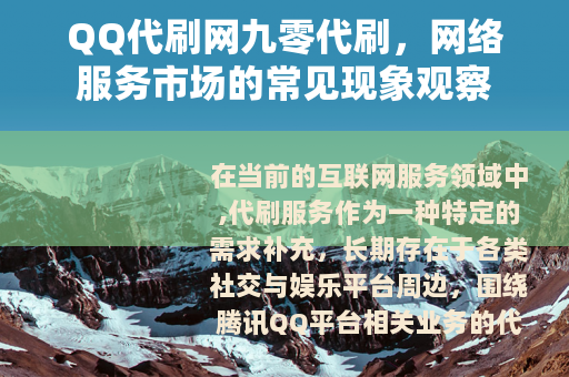 在当前的互联网服务领域中,代刷服务作为一种特定的需求补充,长期存在于各类社交与娱乐平台周边,围绕腾讯QQ平台相关业务的代刷需求,催生了相应的服务提供者,以“九零代刷”为代表的一类服务网站,便是这一市场中的常见参与者,它们主要面向希望快速提升QQ相关功能等级或获取某些虚拟权益的用户,提供相应的辅助服务。