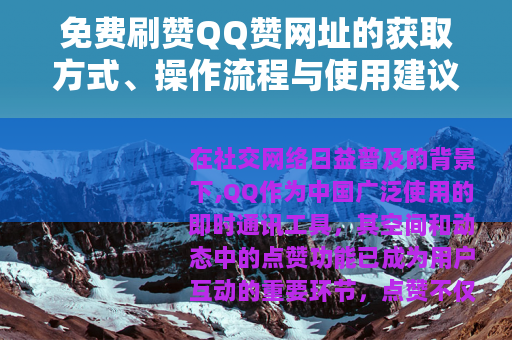 在社交网络日益普及的背景下,QQ作为中国广泛使用的即时通讯工具,其空间和动态中的点赞功能已成为用户互动的重要环节,点赞不仅能够表达对内容的认可,还能提升个人或品牌的可见度,许多用户希望增加点赞数量以增强社交影响力,免费刷赞QQ赞网址便应运而生,这些网址通过提供免费刷赞服务,帮助用户快速获得点赞,成为社交互动中的一种辅助资源。
