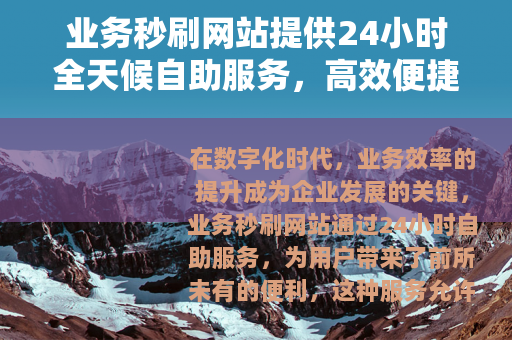 在数字化时代,业务效率的提升成为企业发展的关键,业务秒刷网站通过24小时自助服务,为用户带来了前所未有的便利,这种服务允许用户随时在线操作,无需依赖人工支持,从而显著节省时间与成本,随着自动化技术的普及,此类网站正成为企业优化流程的重要工具,支持快速响应市场变化,增强业务灵活性。