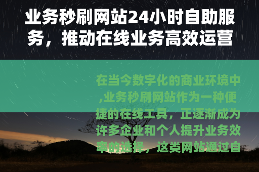 在当今数字化的商业环境中,业务秒刷网站作为一种便捷的在线工具,正逐渐成为许多企业和个人提升业务效率的选择,这类网站通过自动化技术,帮助用户快速实现业务指标的刷新或提升,而24小时自助服务则进一步增强了其灵活性和可访问性,使得用户能够随时根据需求进行操作,无需依赖人工支持,这种模式不仅适应了快节奏的互联网生态,还为业务发展提供了持续的动力。