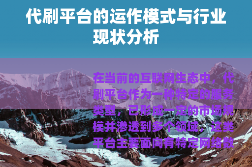 在当前的互联网生态中,代刷平台作为一种特定的服务类型,已形成一定的市场规模并渗透到多个领域,这类平台主要面向有特定网络数据提升需求的个人或商家,提供一种基于技术或人工操作的服务解决方案,其存在与互联网经济的某些运行逻辑紧密相关,理解其运作机制和产生背景,有助于更全面地认识相关网络现象。