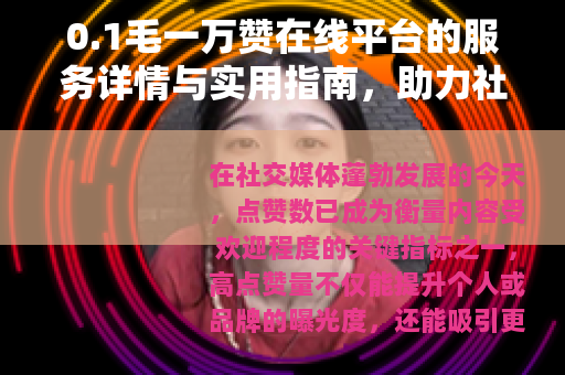 社交媒体环境的动态变化,要求用户灵活运用各种资源,0.1毛一万赞在线平台以其独特价值,为用户提供了更多可能性,通过本文的介绍,读者可以全面掌握该平台的功能与用法,进而结合实际需求,制定有效的社交媒体增长策略,在注重数据表现的时代,这类工具的应用将为内容传播注入新的活力。