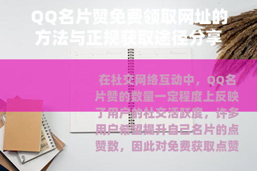 在社交网络互动中,QQ名片赞的数量一定程度上反映了用户的社交活跃度,许多用户希望提升自己名片的点赞数,因此对免费获取点赞的途径颇为关注,本文将介绍几种常见的免费获取QQ名片赞的方法,并分享一些正规可靠的获取思路,供大家参考。