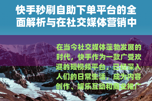 在当今社交媒体蓬勃发展的时代,快手作为一款广受欢迎的短视频平台,已经深入人们的日常生活,成为内容创作、娱乐互动和商业推广的重要载体,随着平台用户数量的持续增长,内容创作者和营销者面临着日益激烈的竞争,如何快速提升视频的互动数据以增强曝光度,成为了一个普遍关注的课题,在这样的背景下,快手秒刷自助下单平台逐渐进入公众视野,成为一种便捷的工具,用于辅助用户增加点赞、评论或分享等互动指标,本文将对这一平台进行详细解析,探讨其运作机制、优势特点以及在社交媒体营销中的实际应用,旨在为用户提供全面的参考信息。