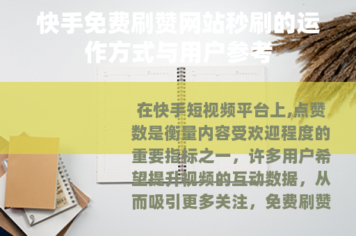 在快手短视频平台上,点赞数是衡量内容受欢迎程度的重要指标之一,许多用户希望提升视频的互动数据,从而吸引更多关注,免费刷赞网站秒刷服务应运而生,这些网站声称能快速、无偿地增加视频点赞数量,本文将介绍这类服务的基本原理,并提供一些使用参考。