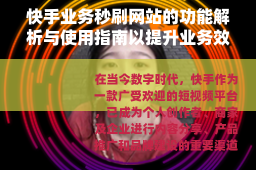 在当今数字时代,快手作为一款广受欢迎的短视频平台,已成为个人创作者、商家及企业进行内容分享、产品推广和品牌建设的重要渠道,随着平台用户基数的扩大和业务需求的多样化,许多辅助工具和服务应运而生,其中快手业务秒刷网站逐渐受到关注,这类网站通过技术手段,旨在帮助用户更高效地处理快手相关业务,从而优化工作流程并提升效果,本文将系统介绍快手业务秒刷网站的核心功能、使用方式及其在实际应用中的潜在价值,为用户提供参考信息。