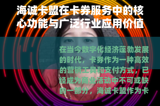 海诚卡盟以其综合的功能设计、可靠的安全保障和广泛的应用场景,在卡券服务领域树立了典范,它不仅是企业优化营销策略的有力工具,也是消费者享受便捷优惠的有效途径,通过持续的技术升级和服务优化,海诚卡盟正引领卡券行业迈向更高效、更智能的未来,为社会经济发展注入新的活力,随着用户认可度的不断提升,海诚卡盟的影响力将进一步扩大,成为数字化时代商业创新不可或缺的伙伴。