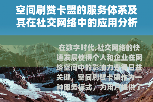 在数字时代,社交网络的快速发展使得个人和企业在网络空间中的影响力变得日益关键,空间刷赞卡盟作为一种服务模式,为用户提供了快速提升社交互动数据的途径,本文将从多个角度分析空间刷赞卡盟的运作机制、服务特点以及其在社交网络中的应用价值,以帮助用户全面了解这一服务。