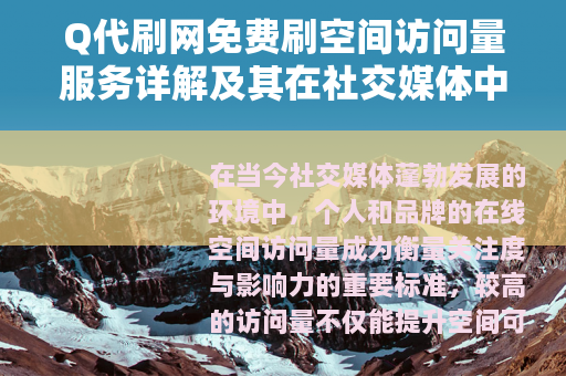 在当今社交媒体蓬勃发展的环境中,个人和品牌的在线空间访问量成为衡量关注度与影响力的重要标准,较高的访问量不仅能提升空间可见度,还能吸引更多真实用户的互动,从而增强网络存在感,为了满足用户对快速提升空间人气的需求,Q代刷网推出了免费刷空间访问量的服务,这项服务通过简便的方式,帮助用户增加空间访问次数,为社交媒体活动带来积极效果。