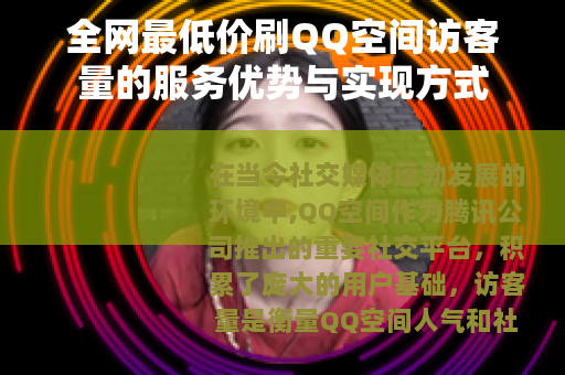 在当今社交媒体蓬勃发展的环境中,QQ空间作为腾讯公司推出的重要社交平台,积累了庞大的用户基础,访客量是衡量QQ空间人气和社交影响力的关键指标之一,许多用户希望通过提升访客量来增强个人或品牌的可见度,为了满足这一需求,全网最低价刷QQ空间访客量的服务应运而生,为用户提供了一种经济高效的解决方案,帮助他们在社交竞争中脱颖而出。