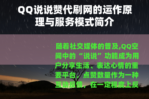 随着社交媒体的普及,QQ空间中的“说说”功能成为用户分享生活、表达心情的重要平台,点赞数量作为一种互动反馈,在一定程度上反映了内容的关注度,部分用户出于个人需求,会借助一些专门提供点赞服务的网站来增加说说的点赞数。